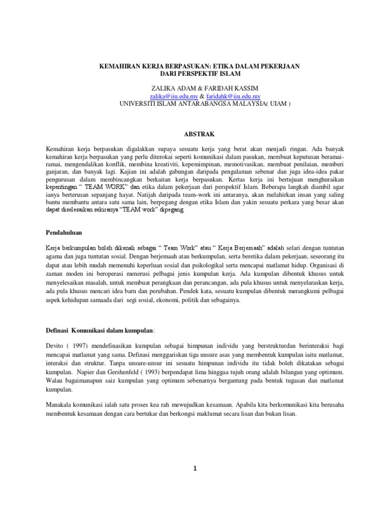Kemahiran Kerja Berpasukan Etika Dalam Pekerjaan Dari Perspektif Islam Iium Repository Irep